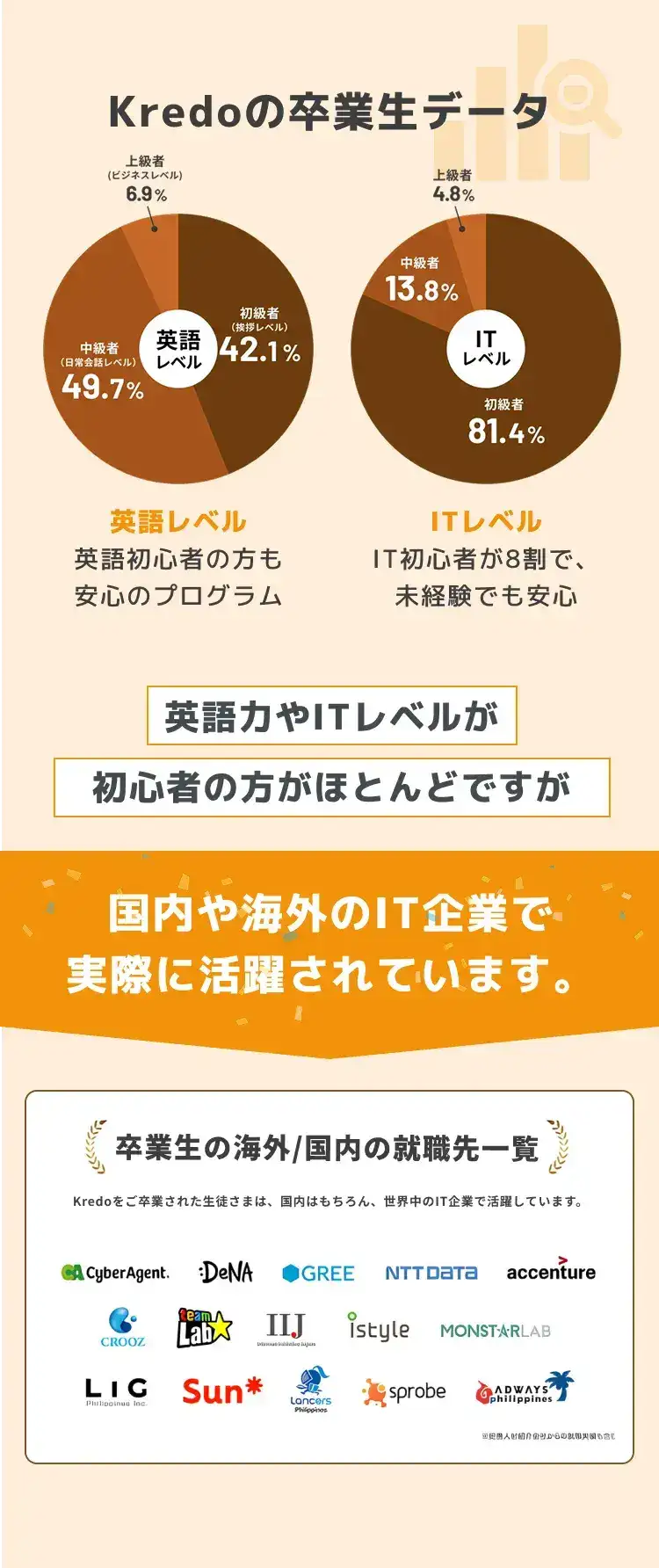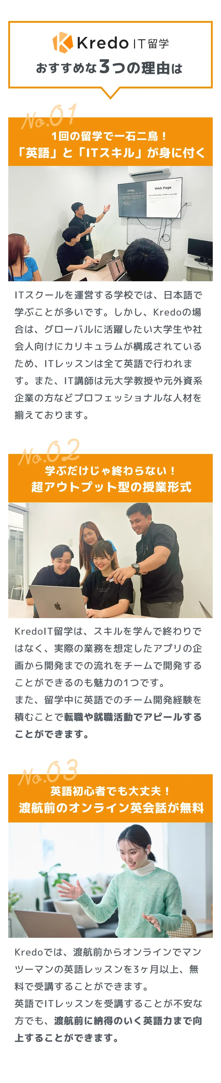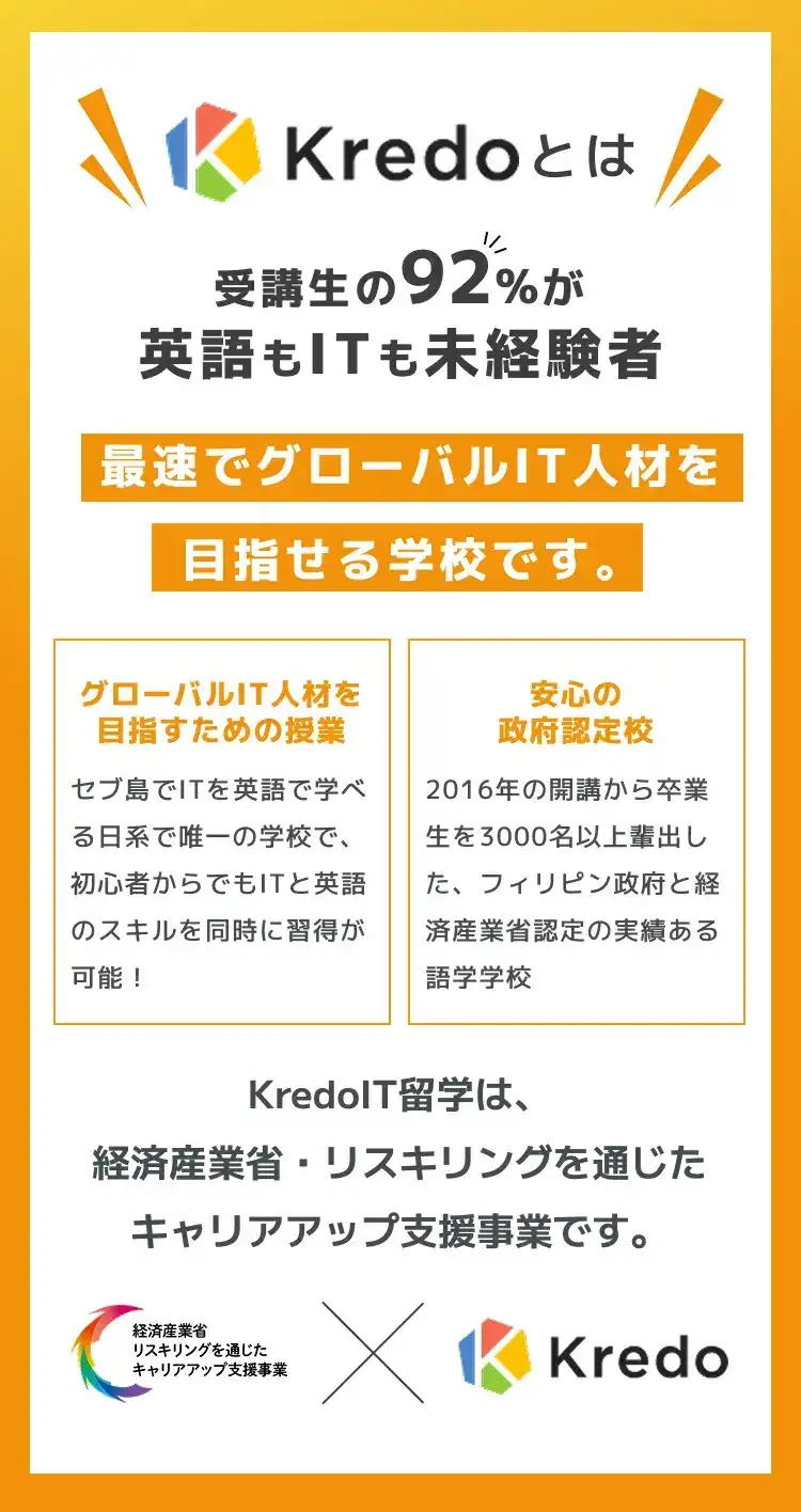 Kredoでは英語・IT未経験でも安心して始められるカリキュラムを提供しています。