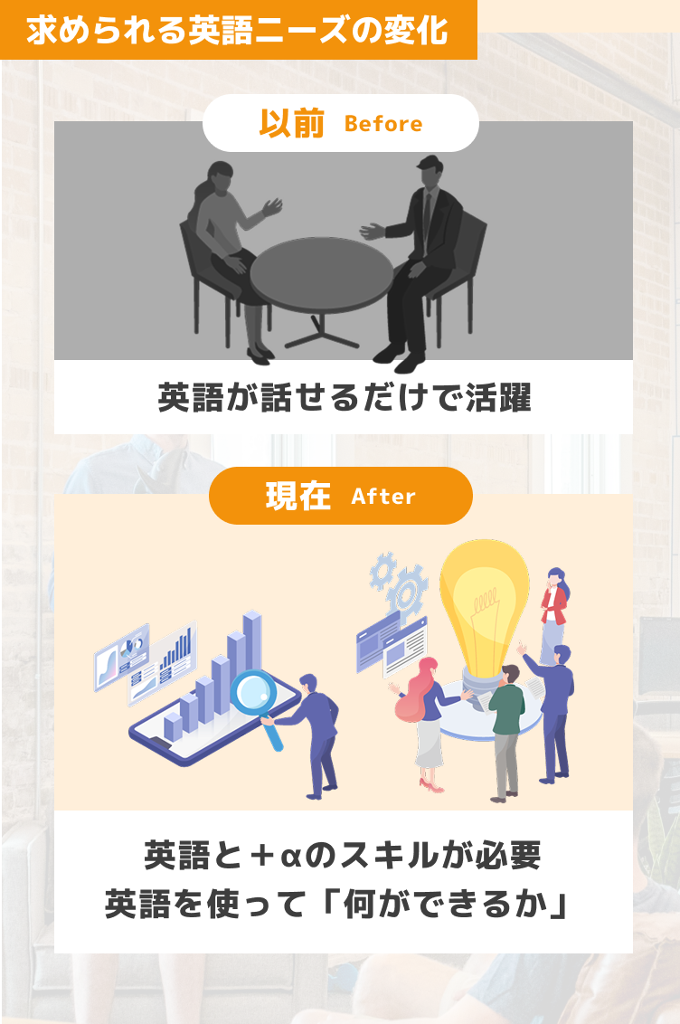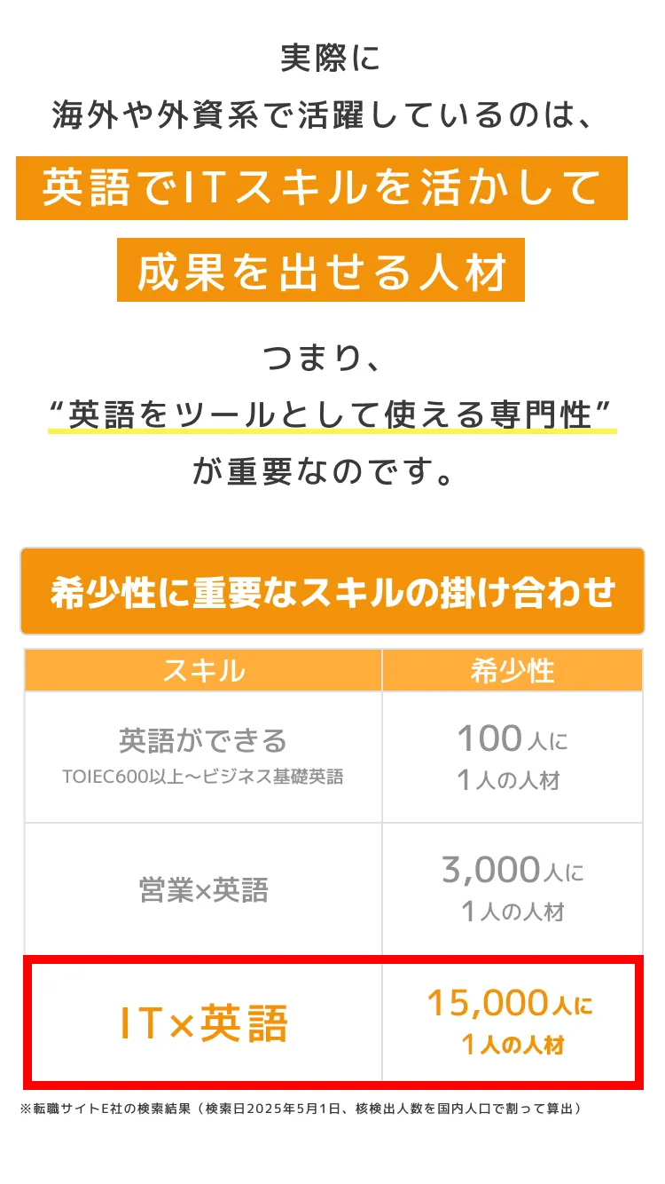 むしろ英語力をさらにブラッシュアップしながら、既存の英語力+ITスキルを掛け合わせてキャリアを作れます。