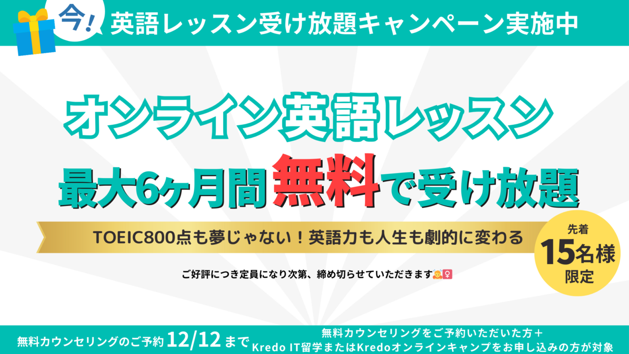 オンラインセミナー(ウェビナー)終了後24時間以内に無料カウンセリングをお申し込みの方はオンライン英語レッスン最大6ヶ月間無料で受け放題をプレゼント!!