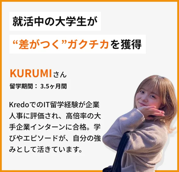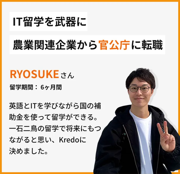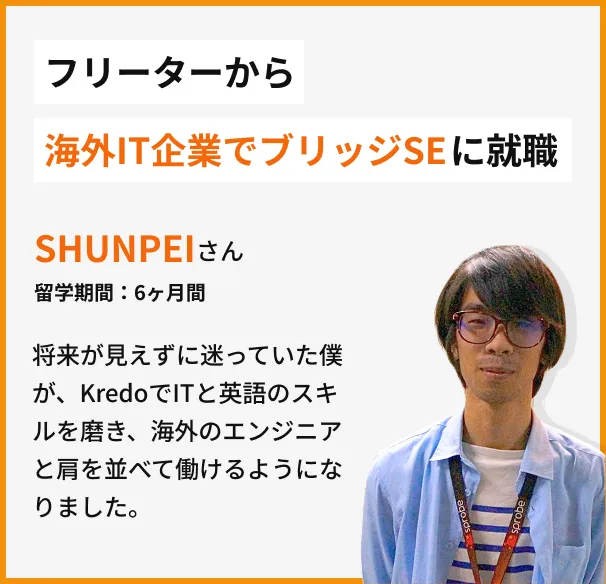 Kredo IT留学は「ITスキル」「英語スキル」の両方が身につけられる実践的なカリキュラムとなっており、今後のキャリアや人生の選択肢を広げることができる貴重なプログラムです。